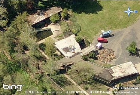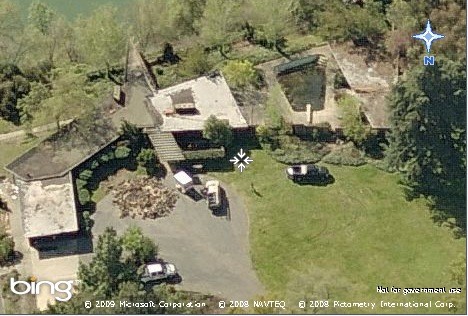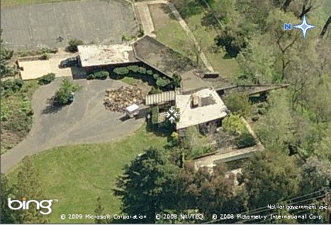 Lost to the bulldozer. Check out the amazing angles in plan, which imagines a bird in flight, and this house's proximity to the American River. Just caught these Bing Satellite maps before they had been updated to reflect the Palatial McMansion that is now on the site.