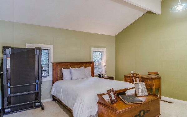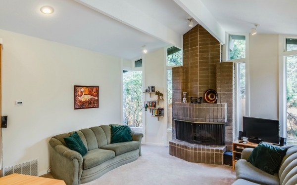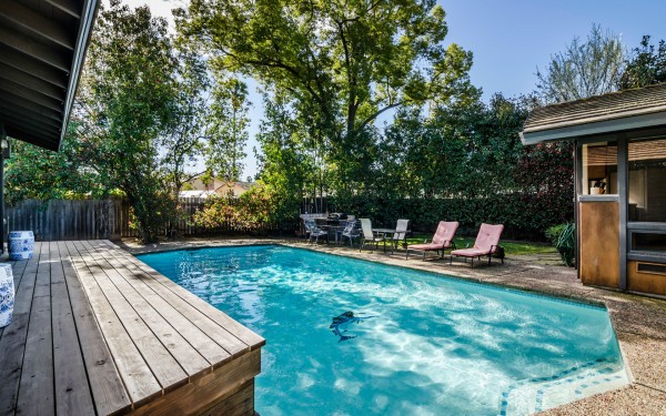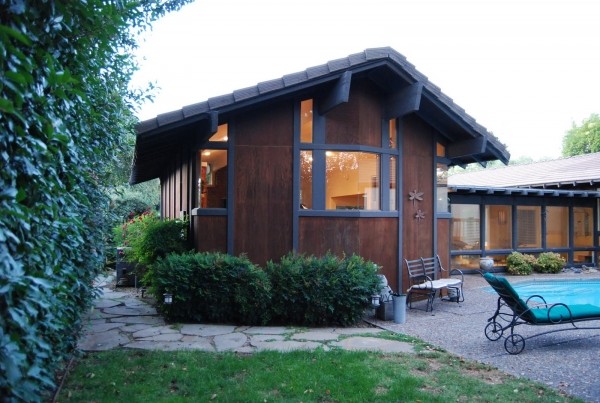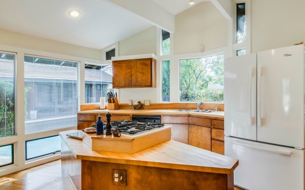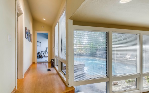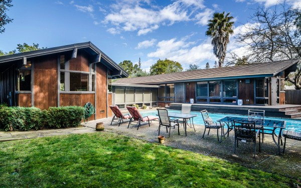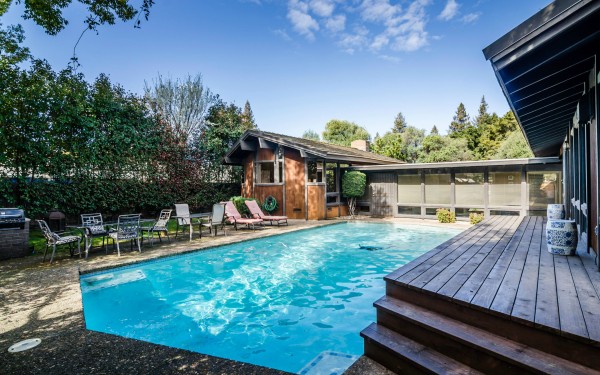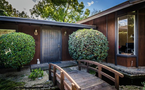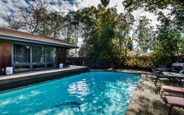 Unique custom built 2bd/2ba home is well-appointed, conveniently located. Enter thru Japanese-style garden into an atrium. One wing is the great room with elevated kitchen & stone chimney. Find a spacious secondary bedroom & master suite in second wing. Master features large, dual entry closet, vanity. Office with exit onto backyard deck. The master bath features a tile surround sunken bathtub. The exquisite backyard has a refreshing pool, built-in BBQ and plenty of space to entertain.