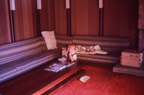 A young Jennifer in the Sparks' home carport, along with some magnificent automobiles. Circa 1965